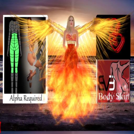 Here are my first four shared gowns, they are my *Elements* collection: Air, Earth, Fire, and Water. All are for EVE Mesh Body only and if you purchase any of them you will have to use your EVE HUD to adjust your alpha accordingly.